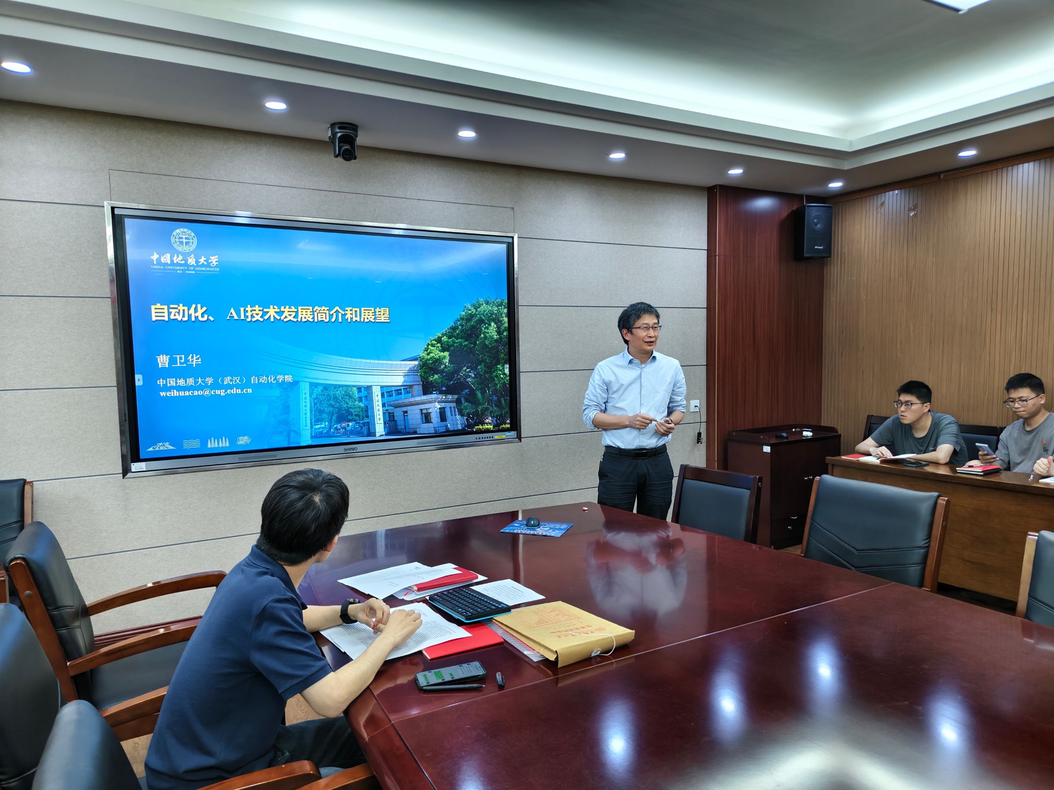 党委副书记、院长曹卫华教授以“自动化与人工智能的发展与思考”为主题在信息楼316为控制科学与工程博士生第一党支部(以下简称“博一党支部”)讲授专题党课。博一党支部全体党员参加学习,会议由博一党支部书记蒋光辉同志主持。