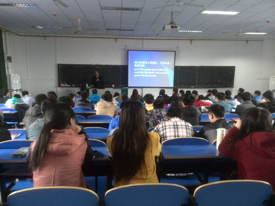 丁老师以习近平主席从知青到国家主席的政治历程为课程引入,首先为学生讲解了党的宗旨,详细阐述了“为人民服务”这一党的根本宗旨的由来,引用苏联解体、东欧剧变这些历史事件来佐证为人民服务的重要性。接着丁老师为学生讲述了党的作风,指出“党风问题、党同人民群众联系问题是关系党生死存亡的问题”,时代对大学生提出了新的要求,学生党员更应保持谦虚、谨慎、不骄、不躁的作风,艰苦奋斗,开拓创新。然后,丁老师为大家讲述了党的先锋模范作用,他同大家一起探讨了当今社会腐败现象及领导干部为官不廉的后果,并向同学们介绍了反腐对策以及应如何看待当前反腐斗争面临的形势,同时指出中国共产党是中国工人阶级的先锋队,是中国人民和中华民族的先锋队,是中国特色社会主义的领导核心,代表着中国先进生产力的发展要求,代表着中国先进文化的前进方向,代表着中国最广大人民的根本利益。丁老师特别告诫同学们要严格要求自己,争取做到“自重、自谨、自强、自立”。最后,丁老师鼓励大家树立良好学风,在学生中发挥党员的先锋模范带头作用。