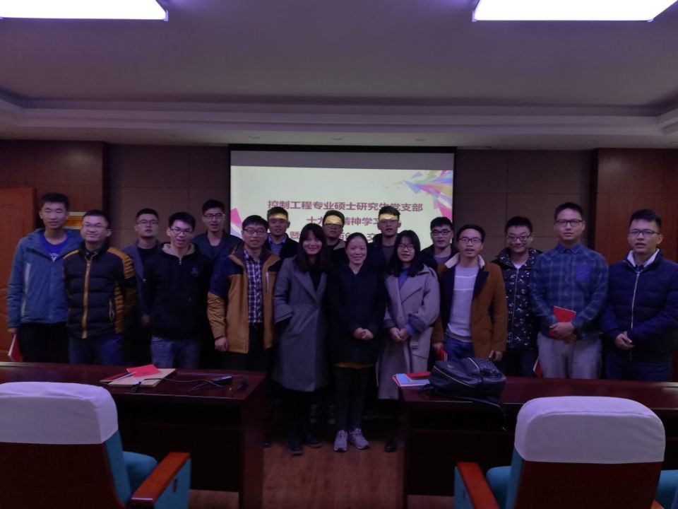 控制工程专业硕士研究生党支部于2017年11月30日在信息楼310召开本学期主题为学习“十九大”精神党组织生活会。