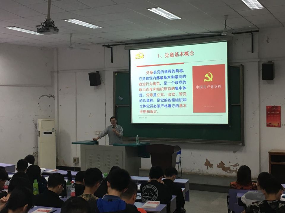 分党校入党积极分子培训班党课第九讲在教三楼207教室举行,本次党课主题是“学习实践党章、加强党性修养”,主讲老师是刘亚东老师。