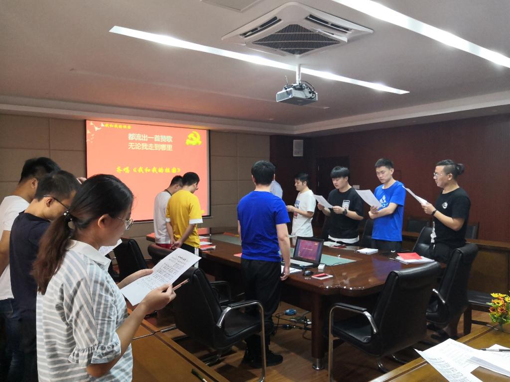 首先,全体与会党员齐唱《中华人民共和国国歌》,重温入党誓词。党支部新接收党员7人,乔金龙介绍了党支部的基本情况。随后,乔金龙带领大家学习了党章第五章的内容,主要涉及党的基层组织、组织机构的设立等知识。接着,支部开展了“强化理想信念,牢记初心使命”的专题学习,内容分为两部分:自学内容和实践内容。乔金龙对自学内容作了详细阐述,鼓励大家发挥主观能动性,采用线上、线下相结合的方式开展形式多样的自学活动,支部后期将陆续开展辛亥革命纪念馆实地参观、“学习之路”主题党课等实践活动。专题学习后,支部成员观看了新中国成立70年成就系列短片,深刻感受了新中国成立70年来国家和人民生活发生的巨大变化,支部成员都为此感到骄傲与自豪。接下来,支部开展“为党员过政治生日”活动,九月份入党的党员齐信钊同志结合自身成长过程,讲述了自己入党前后思想以及政治素养的改变与提升情况。最后,支部全体成员合唱《我和我的祖国》,庆祝新中国70华诞。