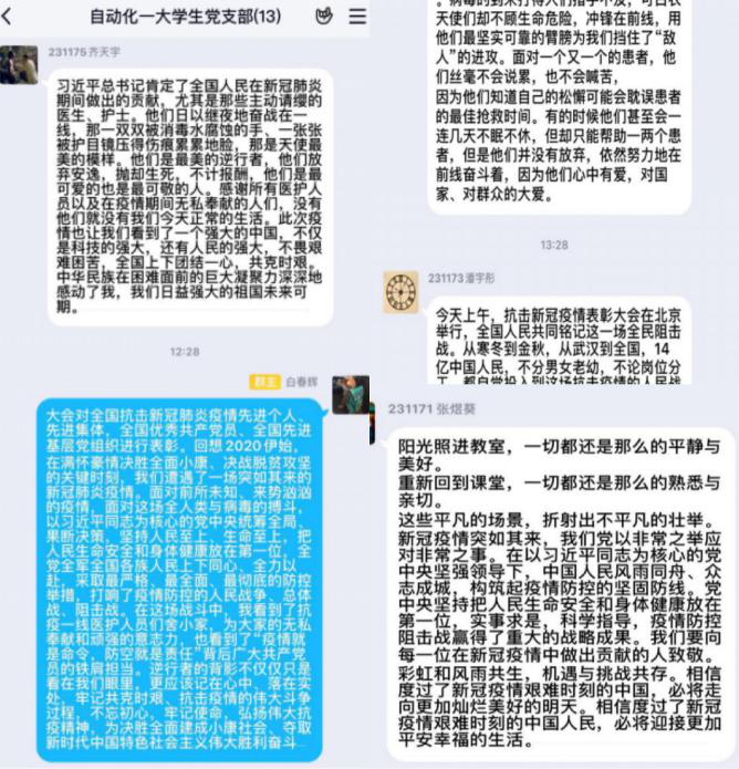 自动化一大学生党支部群内积极发表感想   控制工程硕士生第一党支部群内讨论