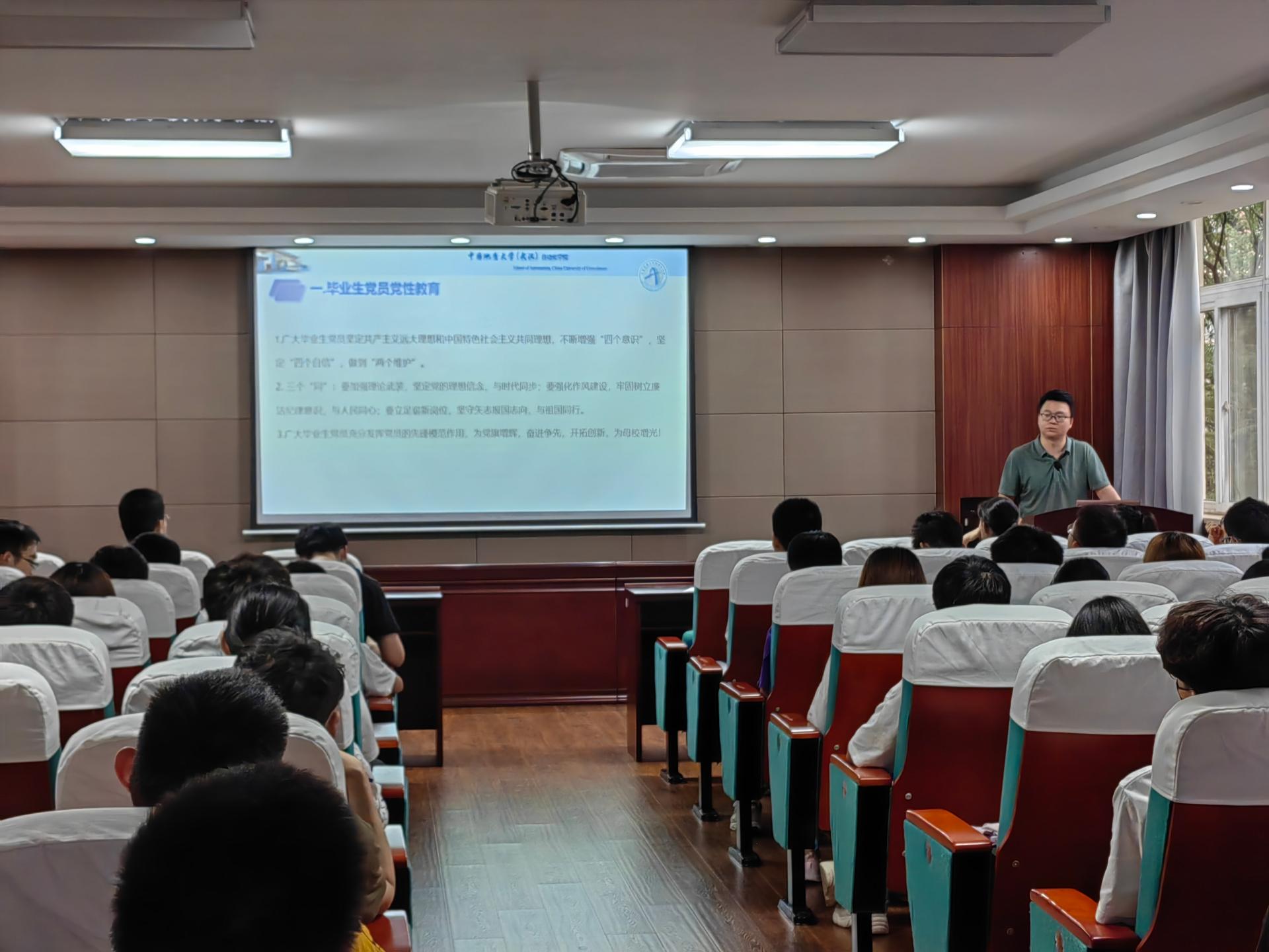 (通讯员 黄兰华 秦丹蕾)2022525日下午6点半,海角视频 毕业生党员大会在信息楼310报告厅召开。首先,黄兰华老师给毕业生党员们上了一堂热情洋溢的党课,随后介绍了毕业生党员的组织关系转接流程以及相关注意事项。