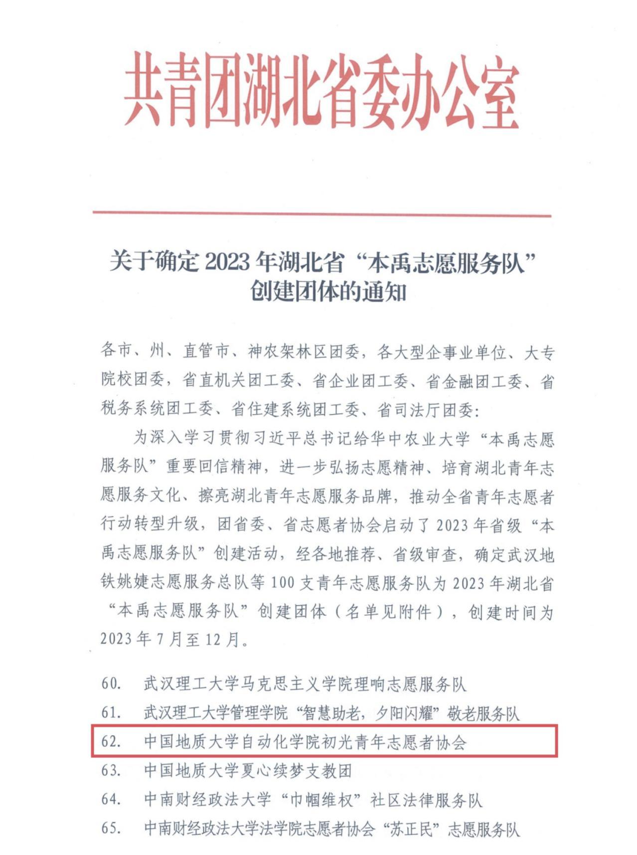 近日,团省委、省志愿者协会印发了2023湖北省“本禹志愿服务队”创建团队(名单),海角视频