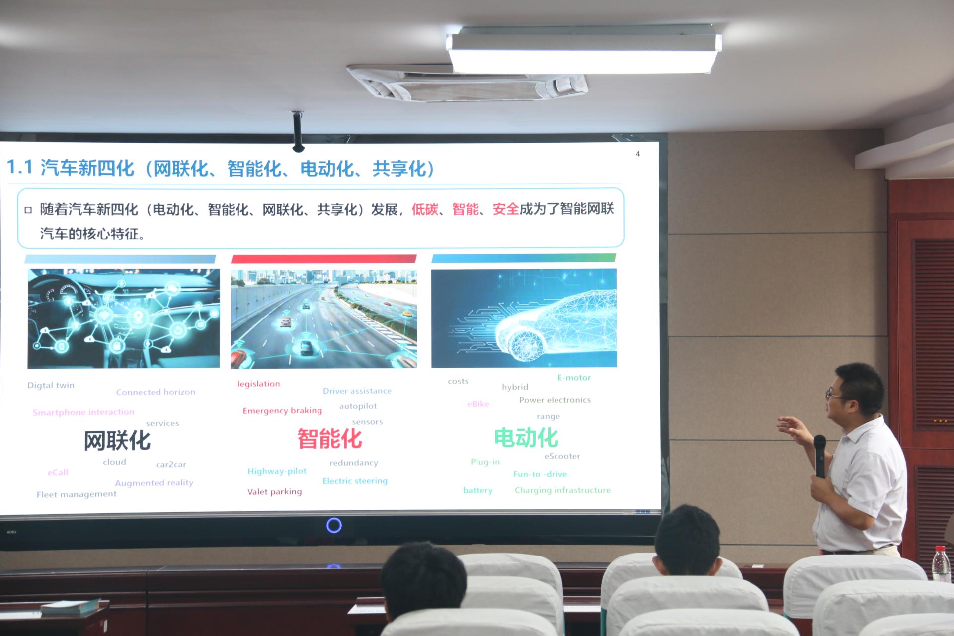 第三期:2022年9月21日下午14:30,东风技术中心智能软件中心在信息楼310进行学术报告交流会。东风集团技术中心智能化技术专业总工程师周海鹰教授以《软件定义汽车时代下的智能汽车生态与人才需求》为题进行专场报告,从软件定义汽车的技术全景出发,系统介绍智能汽车新一代的电子电气架构、面向服务的软件架构,以及智能驾驶与智慧座舱场景,并分析汽车信息安全与汽车元宇宙应用生态等技术发展趋势。随后,与同学们亲切交流,现场座无虚席。