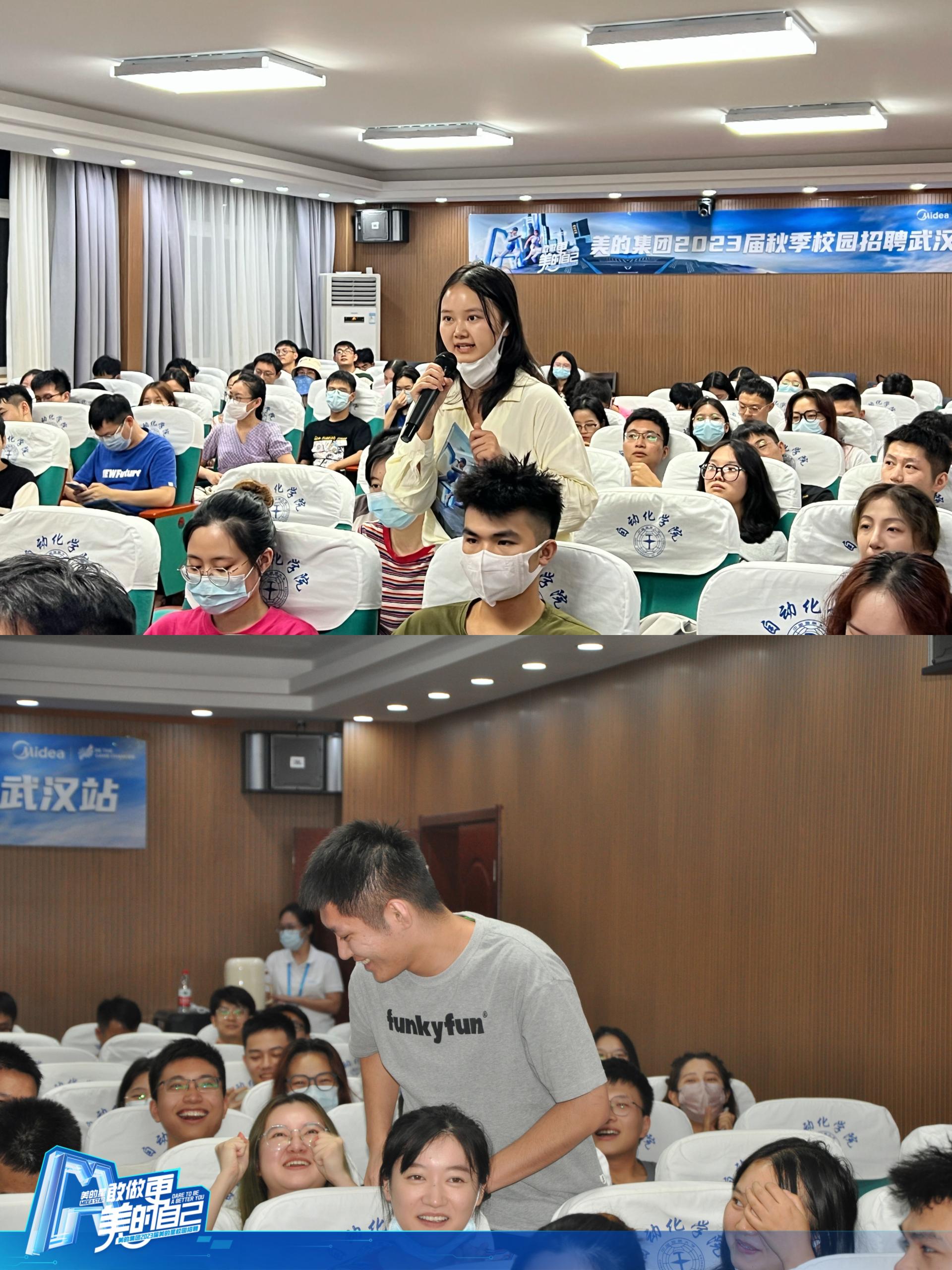 第二期:2022年9月15日晚上19点,美的集团股份有限公司在信息楼310进行专场宣讲招聘会,校友陈俊、赵健男从专业技术和职业发展两个维度进行介绍,帮助同学们了解美的的海角视频和未来发展,活动现场氛围热烈,同学们与校友开展热切交流。