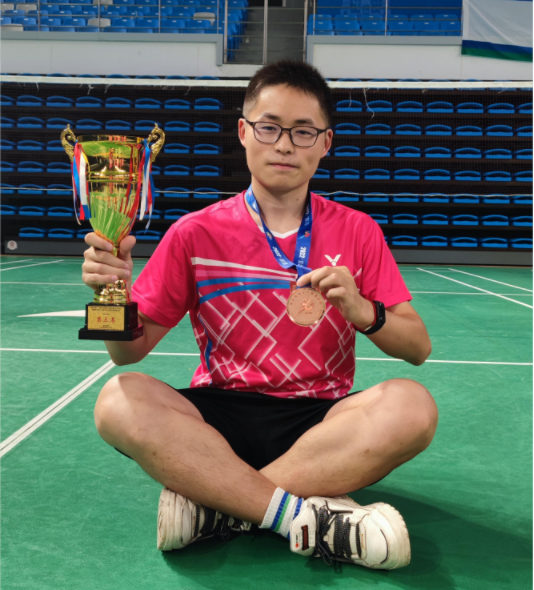 2021级电子信息专业硕士研究生陈国柳,作为羽毛球队男双主力成员代表学校参赛,最终携手团队获得羽毛球甲组男团季军,创造了我校在省运会羽毛球甲组男团历史上的最好成绩。