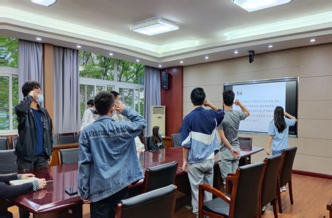 2021年新发展团员入团仪式于2022年4月29日晚18点在信息楼316会议室举行。学院团委副书记黄兰华老师、2021年新入团的5名团员以及组织部部分成员参加了此次会议,此次会议由组织部夏鑫诚主持。