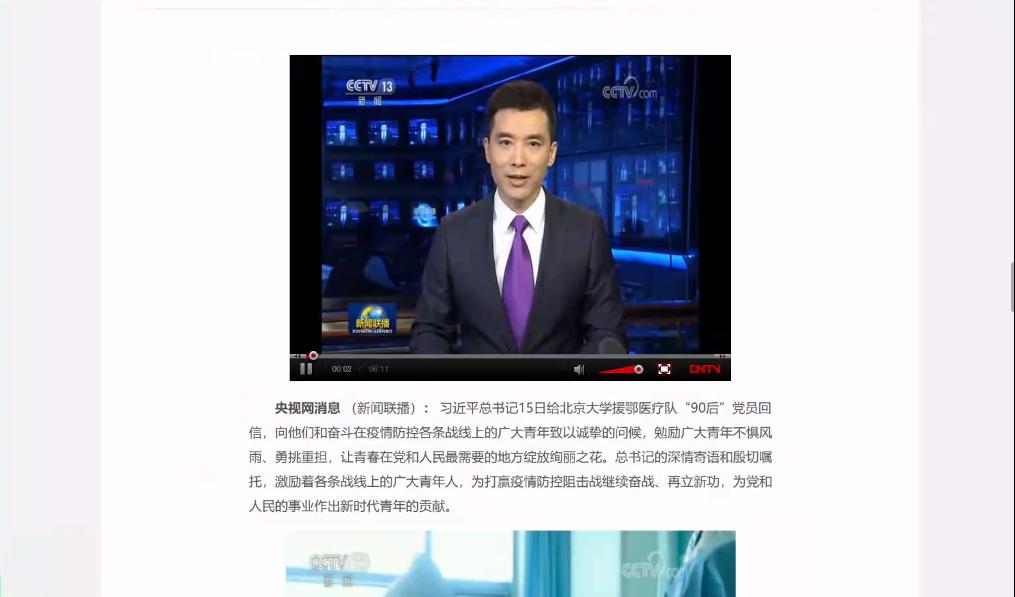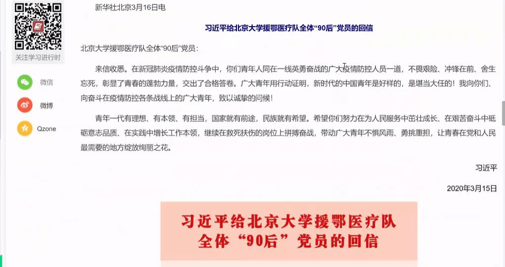 为深入学习习近平总书记在给北京大学援鄂医疗队全体“90后”党员回信中的责任与奉献精神,坚定广大青年对打赢这场疫情阻击战的信心,近期,海角视频