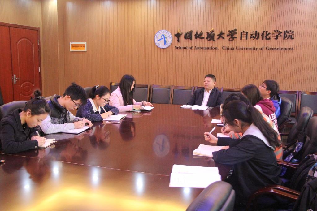 会议开始,谭老师介绍了本次会议的目的。团委,学生会四位主席依次发言,他们汇报了目前的工作情况以及工作中亟待解决的问题,并提出建议。学生会主席蔡莹详细介绍了学生会的四大体系建设即学风、信息权益、文体、宣传工作情况以及存在问题,团委副书记徐乐玏主要就机构设置提出看法,其余学生干部依次针对本部门工作性质及工作情况作了汇报。