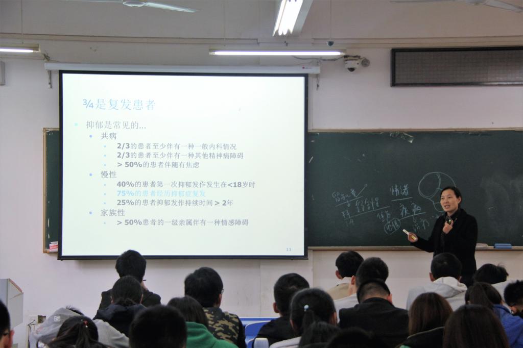 王煜老师以“谈谈抑郁症”为主题,首先从人脑的构造讲起,向同学们生动形象地普及了抑郁症的形成原因。随后,从什么是抑郁症、抑郁症的表现、抑郁症的发病原因以及面对抑郁患者我们应该怎么做这四个方面向新生干部们展开深入浅出的讲解。她呼吁大家了解和认识抑郁症,使用科学的方法面对抑郁症,学会以合理的方式在学习和生活中帮助抑郁症患者。最后,面对同学们提出的问题,她均作出详细的解答。