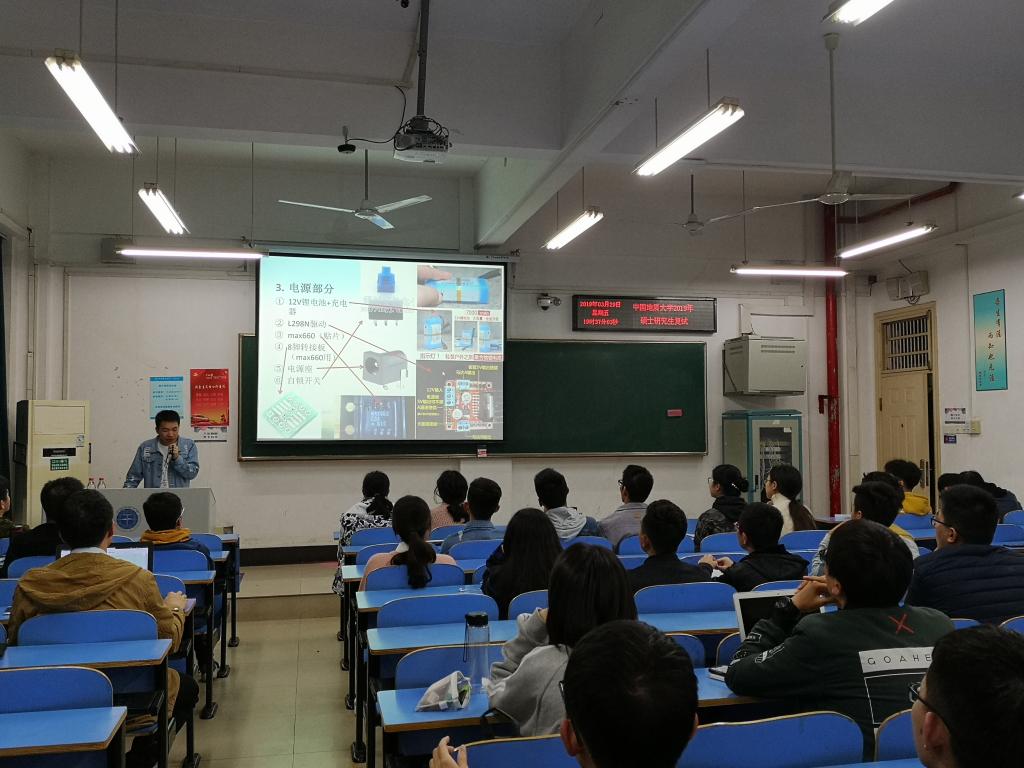 (通讯员 陈莹莹 李桅)2018年3月29日晚,海角视频 第五届风磁电车大赛第一次培训顺利进行。本次培训地点,初级组培训在北综楼202开展,高级组和创意组的培训在北综楼209开展。周丹—湖北省电子设计竞赛特等奖获得者,受邀为初级组培训员,章文—湖北省电子设计竞赛特等奖获得者、孙凯—智能车国赛华南赛区二等奖获得者,分别受邀为高级组和创意组培训员。