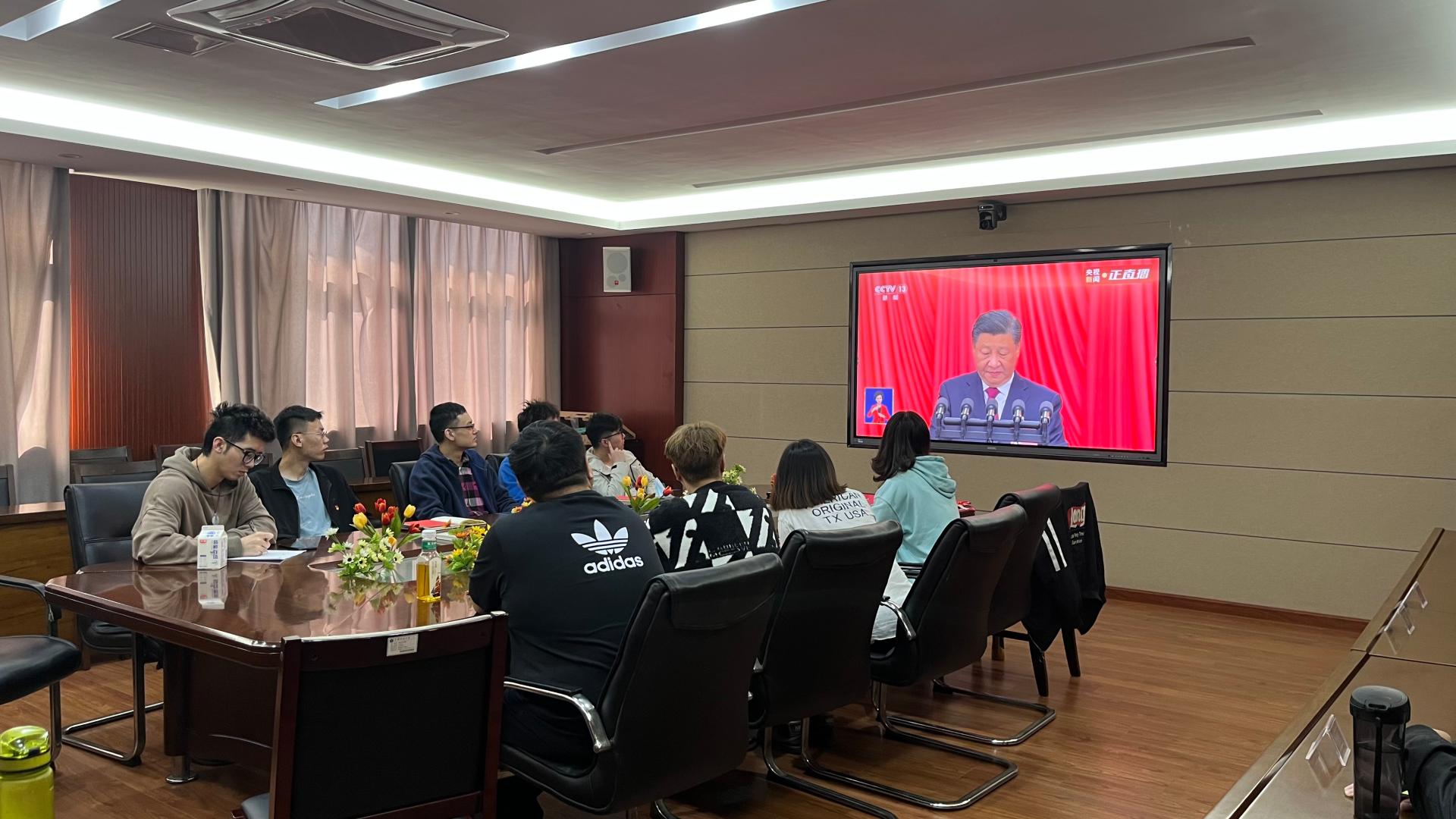 海角视频 党委高度重视,第一时间精心组织师生以系所(中心)、党支部、班级、宿舍为单位进行集中收看党的二十大开幕会,认真听取习近平总书记铿锵有力的报告。大家精神振奋,热情高涨,不时爆发热烈的掌声。在聆听总书记讲话过程中,师生们认真做笔记,会后学院党委通过集中召开座谈会的形式深入学习领会党的二十大精神。