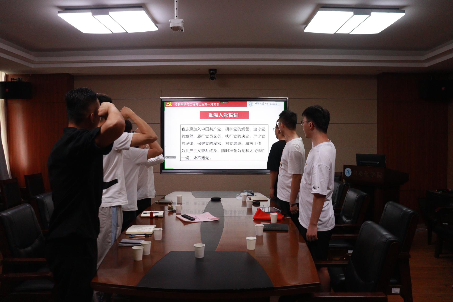 在齐唱国歌、重温入党誓词之后,学生党支部书记依次介绍了各自支部建设特色与成绩。陈文虎同志借助支自制党建视频,重点介绍了博一支部开展“云实践”、搭建“红星闪闪伴我行”分享平台等支部品牌活动;王光耀同志从思想政治学习和组织建设两方面介绍了专硕二支部的发展情况;蔡斯同志紧扣“攀登精神”主线,从组织建设、特色活动、党支部战斗堡垒作用、党员先锋模范作用方面详细介绍了在申报全国样板党支部过程中积累的先进经验。