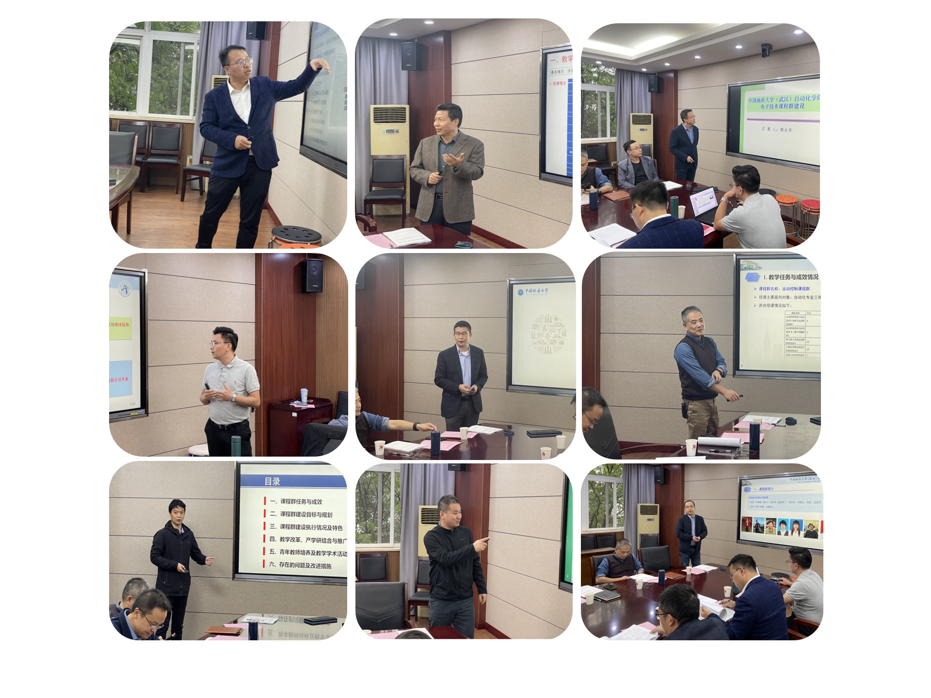 学院9大课程群负责人分别就课程群建设情况进行了汇报,展示了一年的建设成果,分享了建设经验和持续改进的工作计划。课程群成员们也积极参与了交流和讨论。