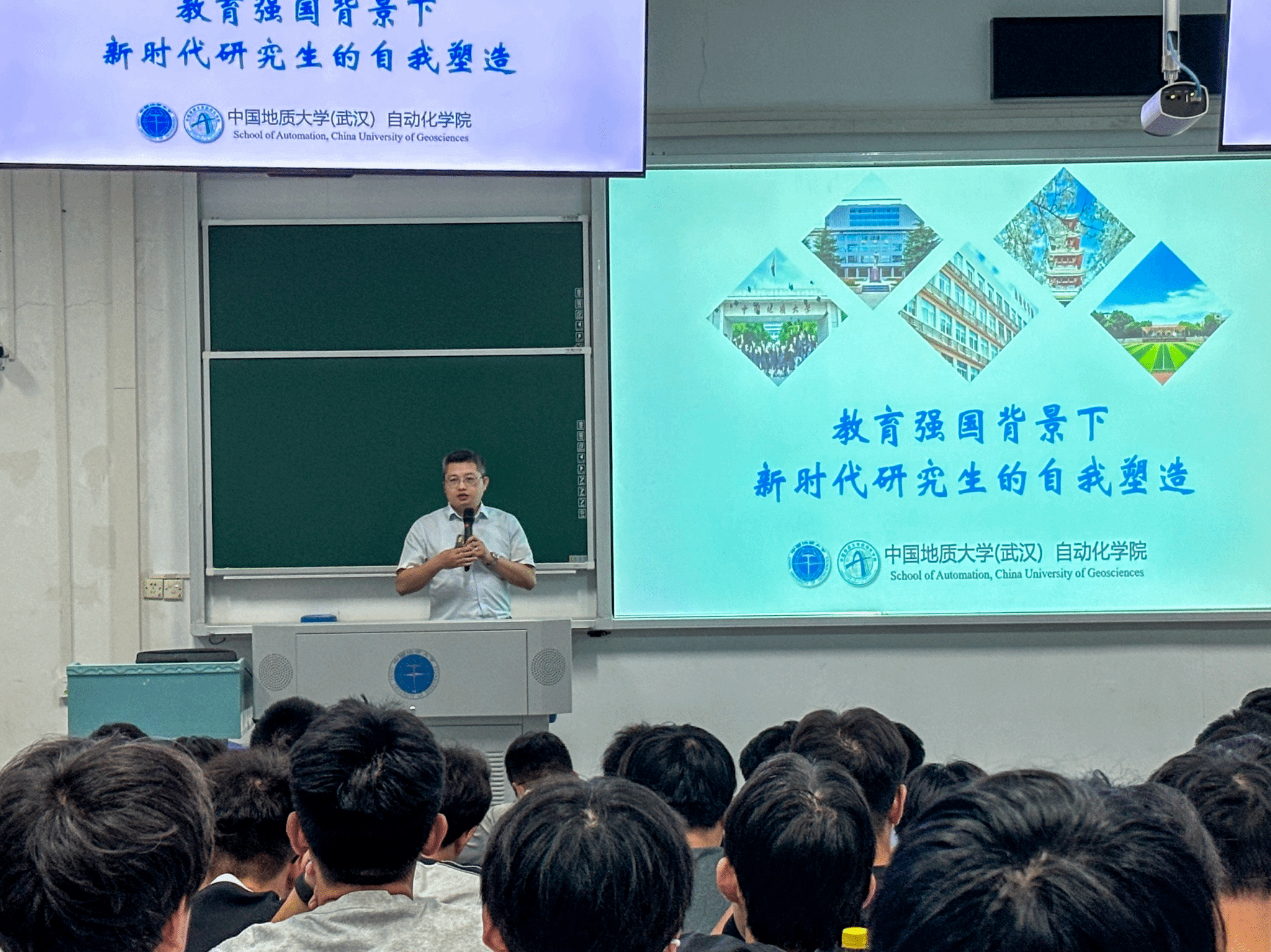 活动伊始,刘振焘教授围绕“教育强国背景下新时代研究生的自我塑造”作专题分享。他从学院历史沿革切入,勉励大家充分依托学院的师资队伍、科研平台等雄厚资源,不断提升科研能力;随后,他聚焦创新思维能力培养,鼓励大家坚持问题导向,勇于挑战前沿难题。最后,他寄语新生,要矢志科技报国,将个人理想融入国家发展,勇攀高峰。