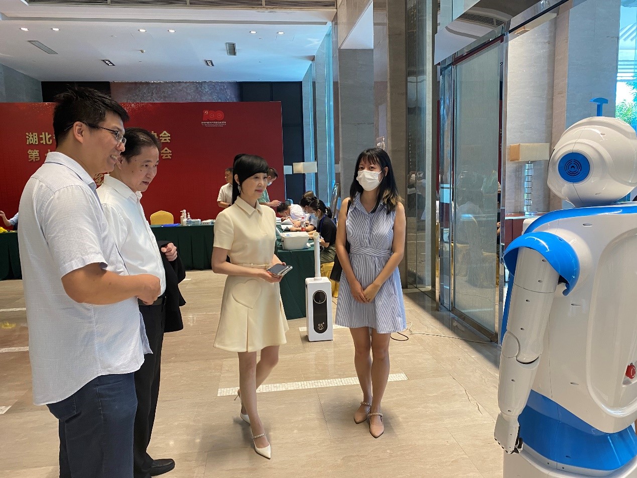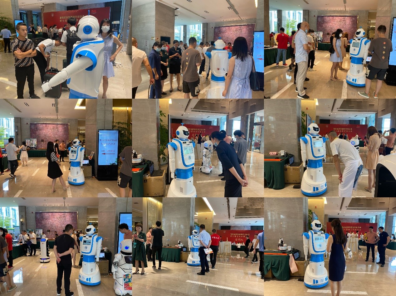 WEBO参展期间,参会人员纷纷与WEBO进行互动交流,测试它的情感服务功能。湖北省人大代表、湖北省烹饪酒店行业协会第六届理事会会长孙桃香、中国烹饪协会理事会副会长、湖北省十大杰出青年刘国梁在研发团队的介绍下与WEBO展开互动,并且对情感机器人产生了浓厚的兴趣。