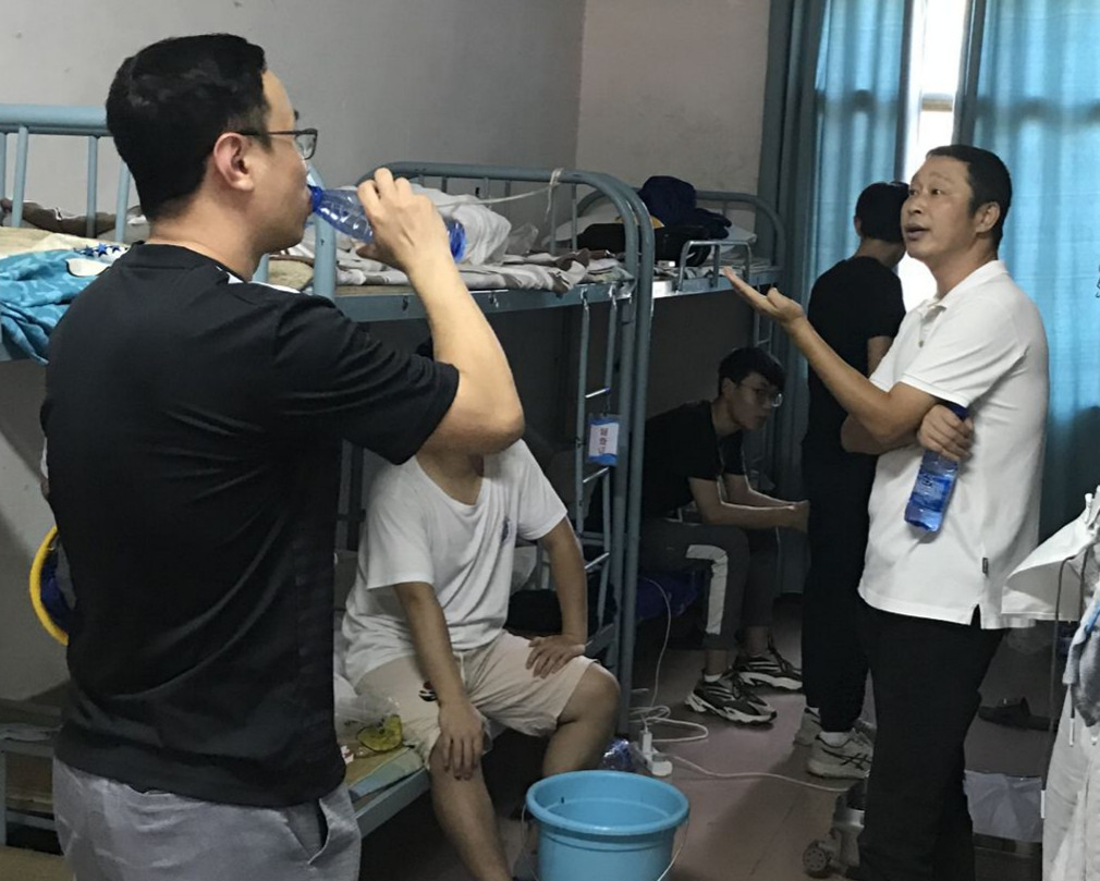 吴敏院长和曹卫华常务副院长来到涟钢看望实习师生,指导学生实习,深入宿舍,了解学生课余学习、生活及疫情防控情况,走进食堂,了解伙食状况,并充分肯定师生们在高温环境和疫情防控下积极的精神面貌。