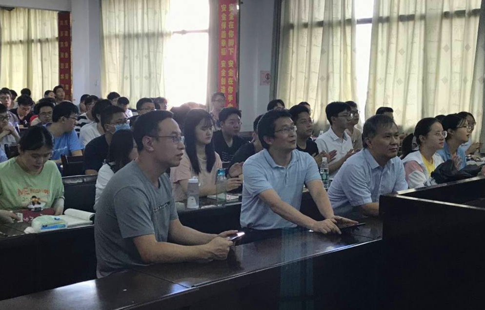 吴敏院长(右五)、曹卫华常务副院长(左一)与师生在一起