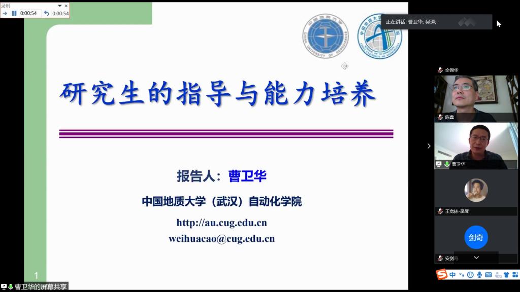 曹卫华教授以《研究生导师的指导与能力培养》为题,把20多年的研究生培养经验凝练成5点认识,介绍了当好导师的心得体会,并就研究生不同阶段的培养训练重点进行了介绍;新任教师、特任副教授甘超以《研究生导师培养环节指导的规划化》为题,以一名博士的视角,交流了通过接受学术材料格式规范化训练、文献阅读能力养成、定期学术研讨锻炼等规范化培养后的收获感受,介绍了规范化培养的重要意义。