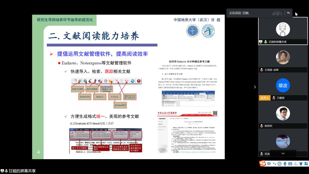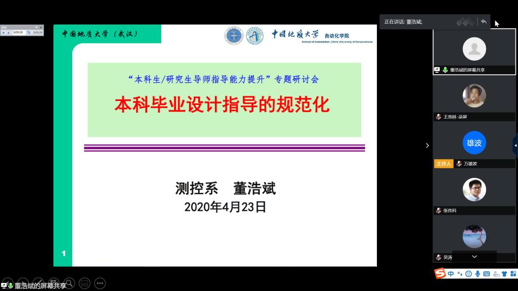 2020年导师指导能力提升专题研讨会以腾讯会议的形式举行。教务处副处长张建和、研究生院常务副院长张宏飞、副院长吴堂高,以及海角视频
