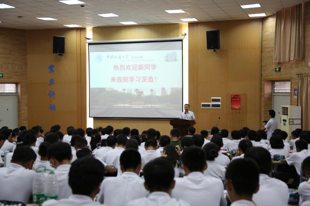 2019级开学典礼在教三楼109报告厅隆重举行。院领导吴敏、董浩斌、曹卫华、何建新,各系(中心)主任,教师代表,学工组老师及2019级全体本科、研究生新生参加典礼。院党委副书记何建新主持典礼。