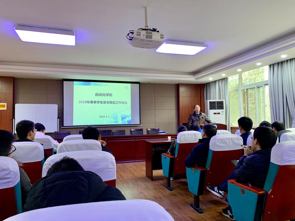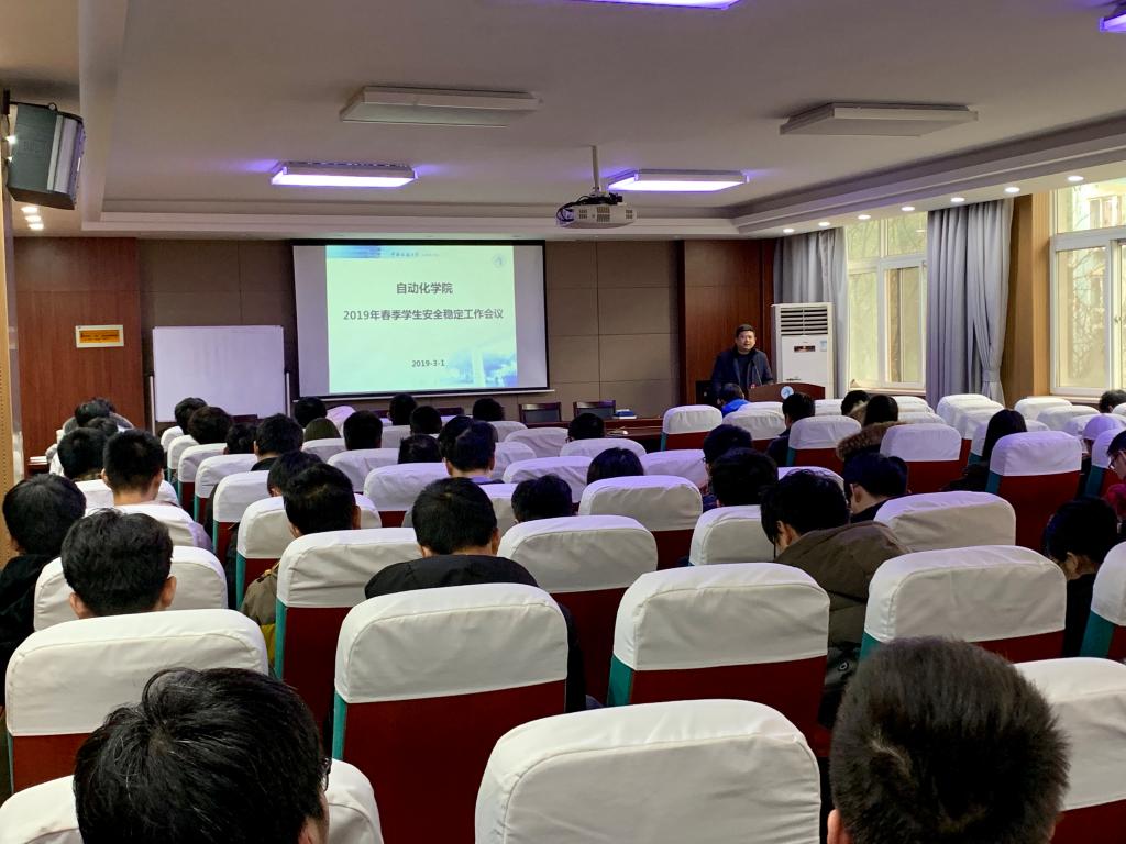 召开2019年春季学期学生安全稳定工作会议,落实上级工作安排,布置学院安全稳定工作。院党委书记董浩斌,党委副书记何建新,副院长曹卫华,各系(中心)书记、主任,辅导员,全体学生干部参加会议。何建新主持会议。