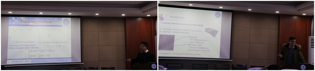 举办新任教师学术报告会。特任教授姜晓伟作了题为《Performance limitations of networked control systems》的学术报告,特任副教授刘欢作了题为《Sensor Data-Driven Approaches for Damage Assessment and Quantification in Composite Materials》的学术报告。