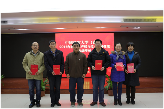 、信息工程学院、环境学院和材料与化学学院5个知识产权与技术转移工作先进单位;徐红、张静、朱宠莲、左麦枝以及牟扬5位知识产权与技术转移管理服务先进个人;张伟民、郭明强、马保松、卢筱、鲍建国、程寒松、田熙科等20位专利申请与转化先进个人。赖旭龙副校长、各部门负责人为获奖单位以及先进个人颁奖。