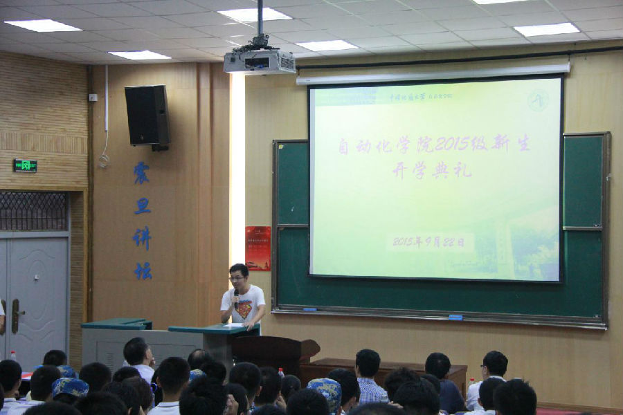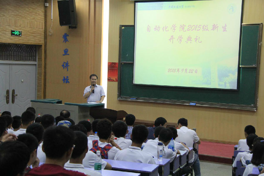2015级新生开学典礼在教三楼111隆重举行。吴敏、董浩斌、曹卫华、王广君、陈鑫、吴涛、李志华、安剑奇、刘小波等院系领导参加了大会。