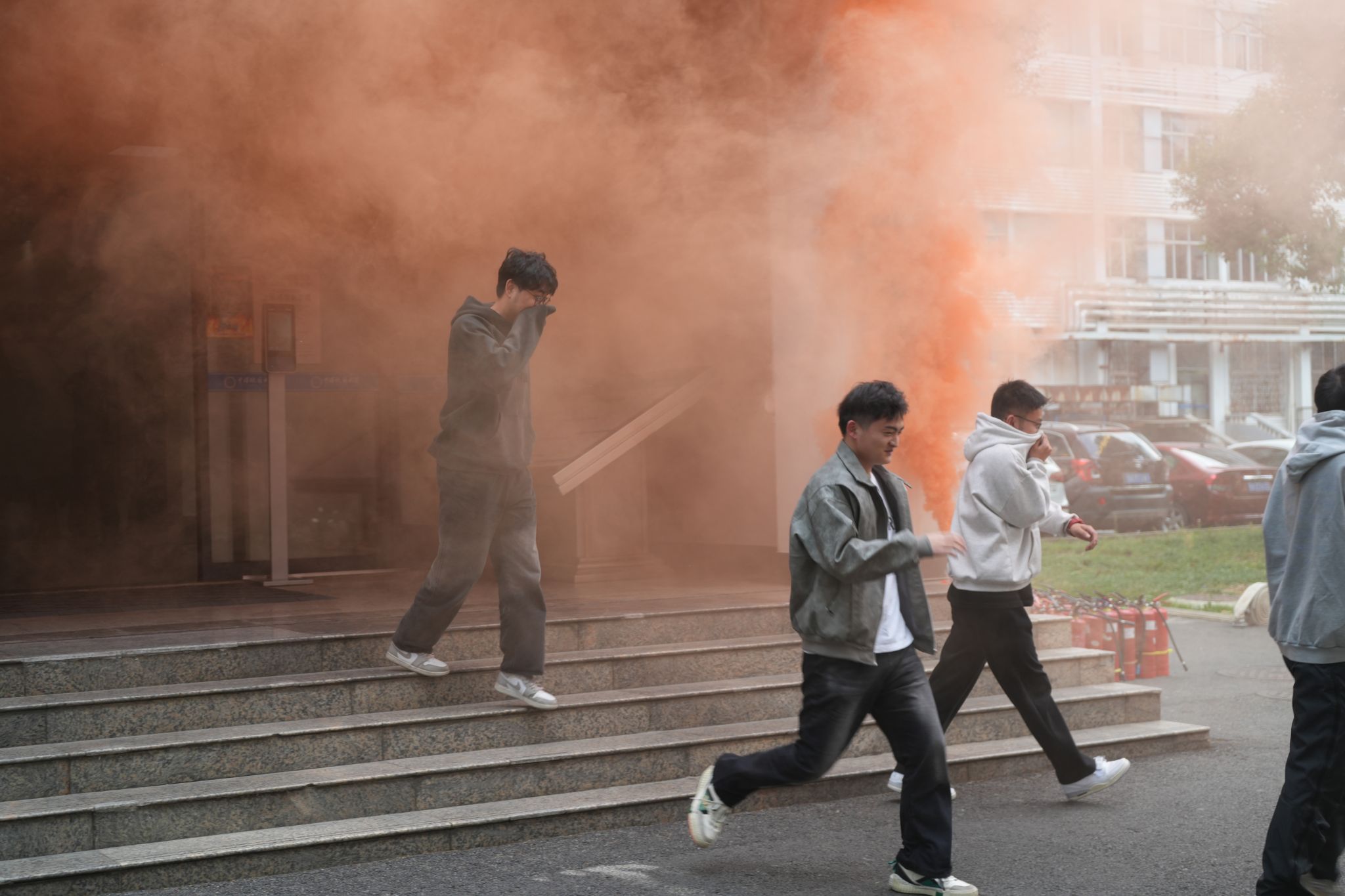 下午15:10分,学院党委副书记、演练总指挥王向东一声令下,消防安全应急疏散演练正式开始。本次演练预设信息楼四楼实验室发生火情,随着浓烟在楼道内弥漫,急促的警报声响彻信息楼,消防广播也在楼内响起,提醒大家逃生。学院立即启动应急预案,拨打报警电话、扑救初期火灾并疏散场内师生。逃生演练中,全体师生按照预案规定的就近疏散路线和“火场”逃生疏散演练技巧,用湿毛巾捂住口鼻,低姿通过安全出口,安全、高效、有序的撤离,几分钟后学生们全部撤离到安全区域,无拥挤、踩踏和碰伤事故发生,展现了良好的应急反应和秩序。