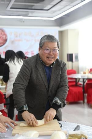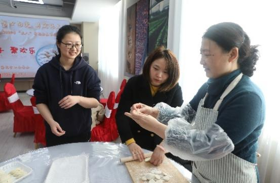 川田誠一教授也被现场快乐的氛围感染,参与其中,体验中国的传统文化,也使活动增添了跨文化交流的色彩。本次活动,受到女教职工欢迎,也得到学院领导的重视。部分女教职工和领导在完成下午的“预答辩”后赶来参加活动。在谈笑风生中,一盘盘热腾腾的饺子端上了桌子,大家共同分享劳动成果。