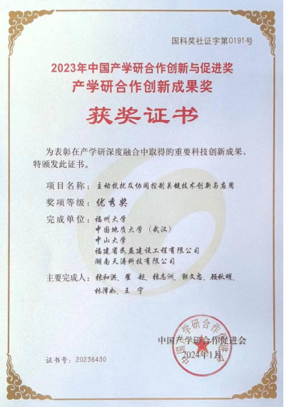 翟超教授参与完成的“主动抗扰及协同控制关键技术创新与应用”项目获2023年中国产学研合作创新成果奖优秀奖。