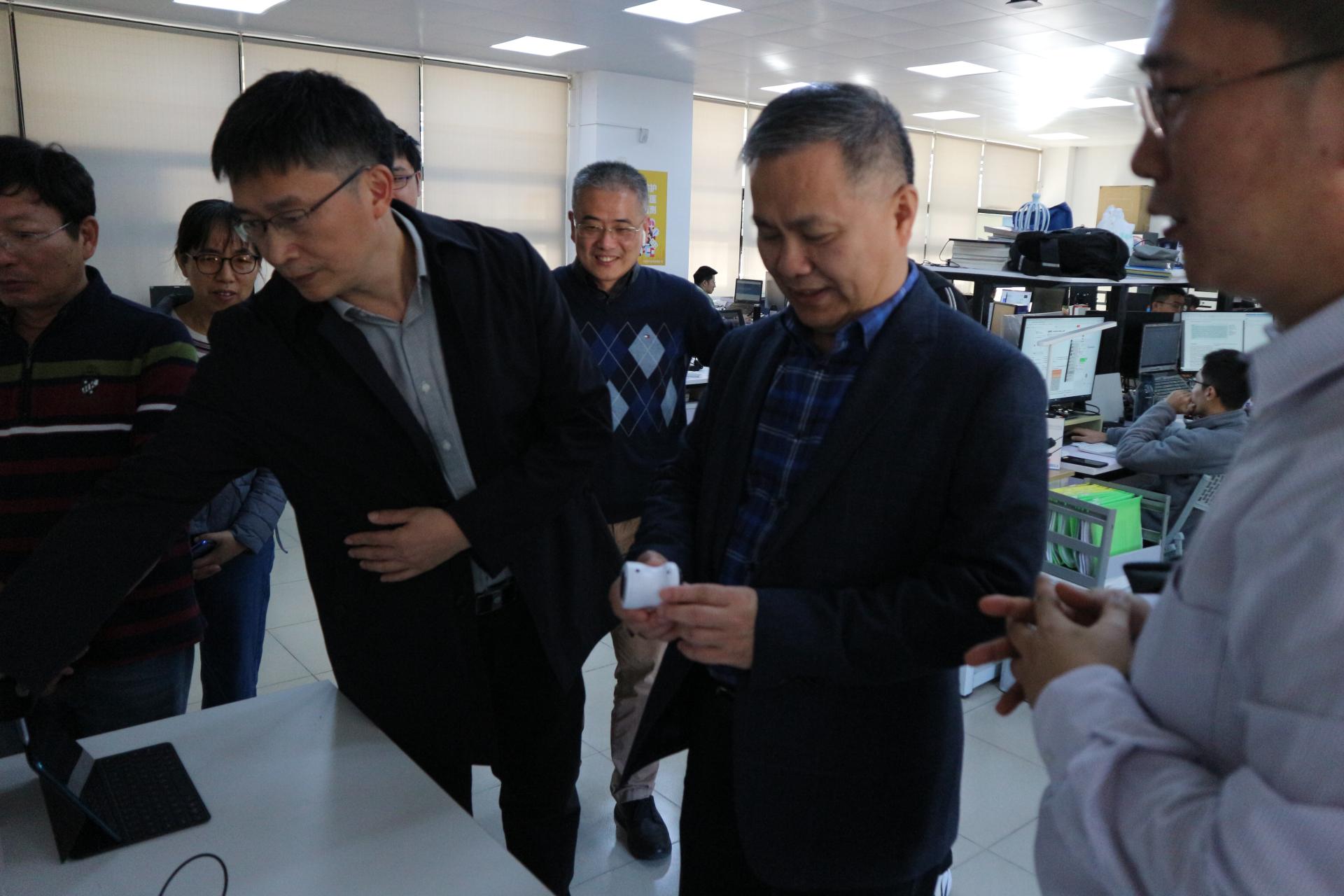在介绍了各自的科研工作后,双方就如何开展合作进行了讨论。会后,吴敏、曹卫华一行参观了陈列馆和设备库,并到码头参观了海洋地质调查船,就海洋水文地质调查装备智能化问题展开了调研。