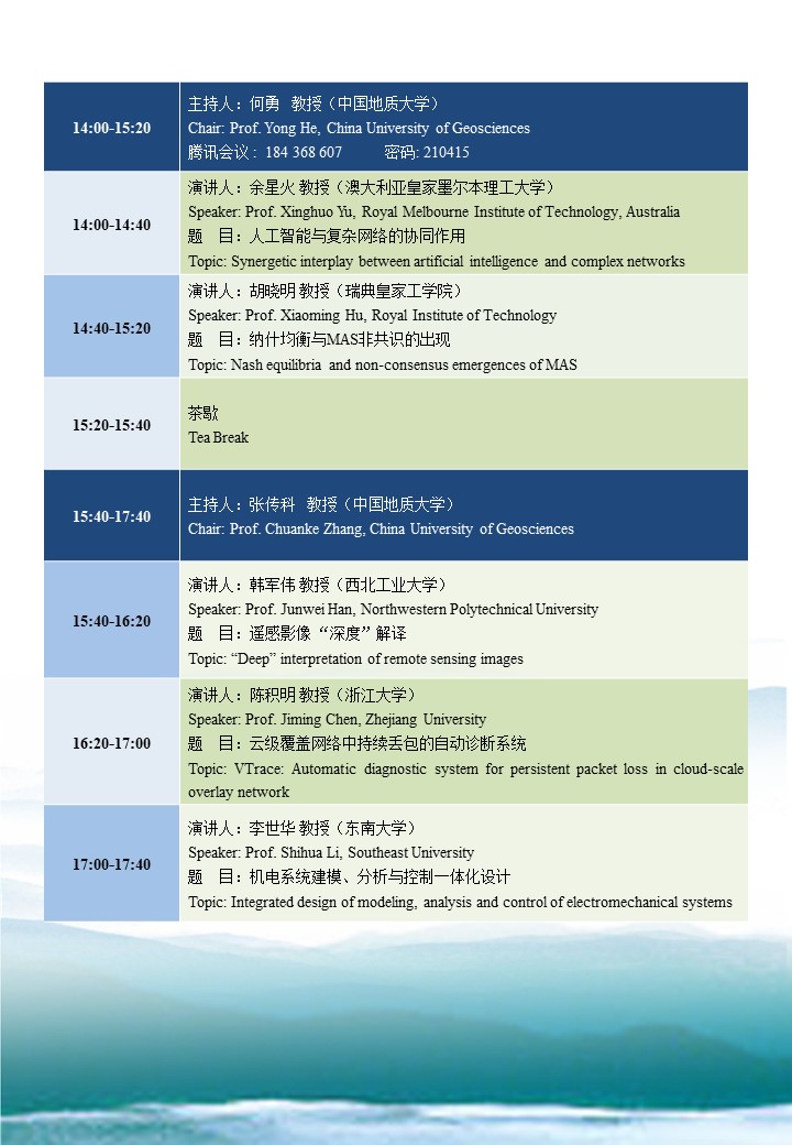 复杂系统先进控制与智能自动化2021年春季学术研讨会