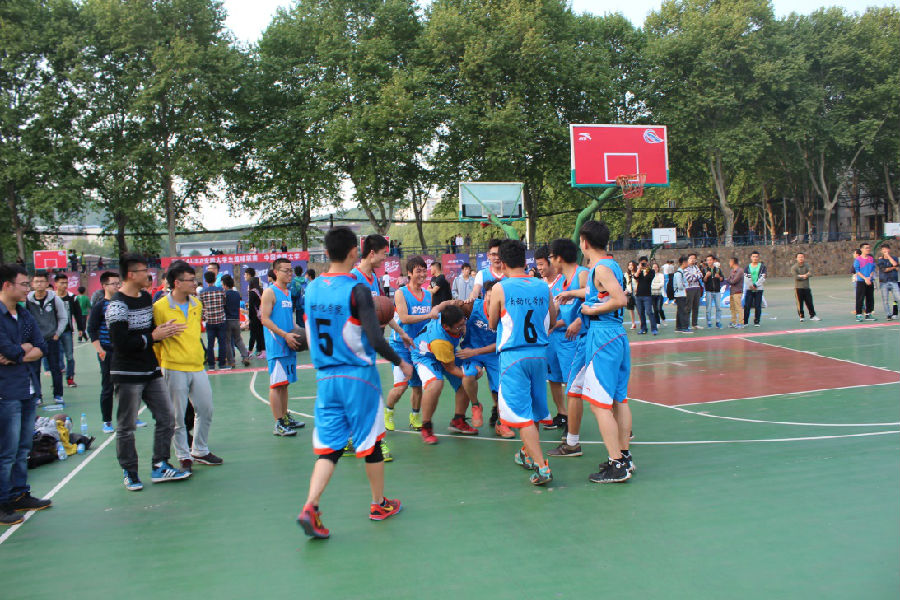 (通讯员 曹建瑾)2015年4月21号下午“地大杯”男篮在校西区篮球场开幕并进行比赛。