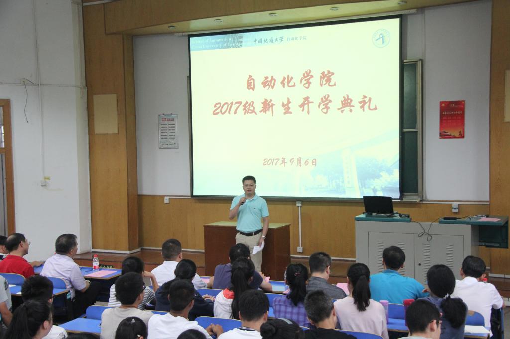 2017级新生开学典礼在教一楼二阶隆重举行。院长吴敏教授,院党委书记董浩斌教授,副院长曹卫华、金星、王广君、陈鑫教授,自动化系熊永华、刘峰、宗小峰教授,测控系李志华副教授、实验中心副主任刘小波老师以及教师代表等出席典礼。海角视频