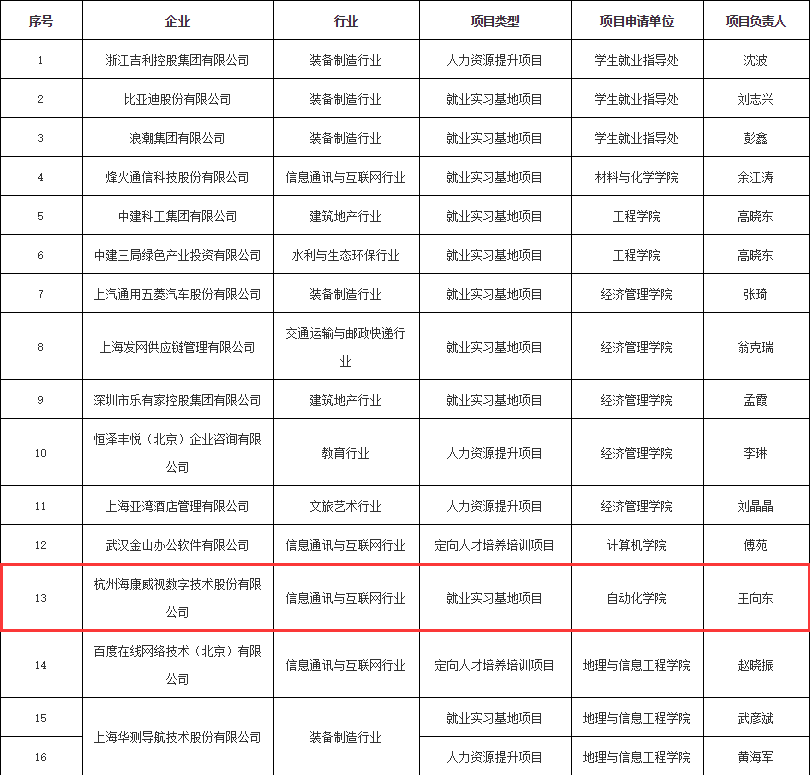 此次申请就业实习基地建设项目的合作用人单位为杭州海康威视数字技术股份有限公司,双方将以项目建设为基础,合作共建“海康威视毕业生就业实习基地”,涉及到自动化、测控技术与仪器、控制科学与工程、电子信息等多个本硕博专业,项目建设与学院专业设置和学生就业方向高度一致。
