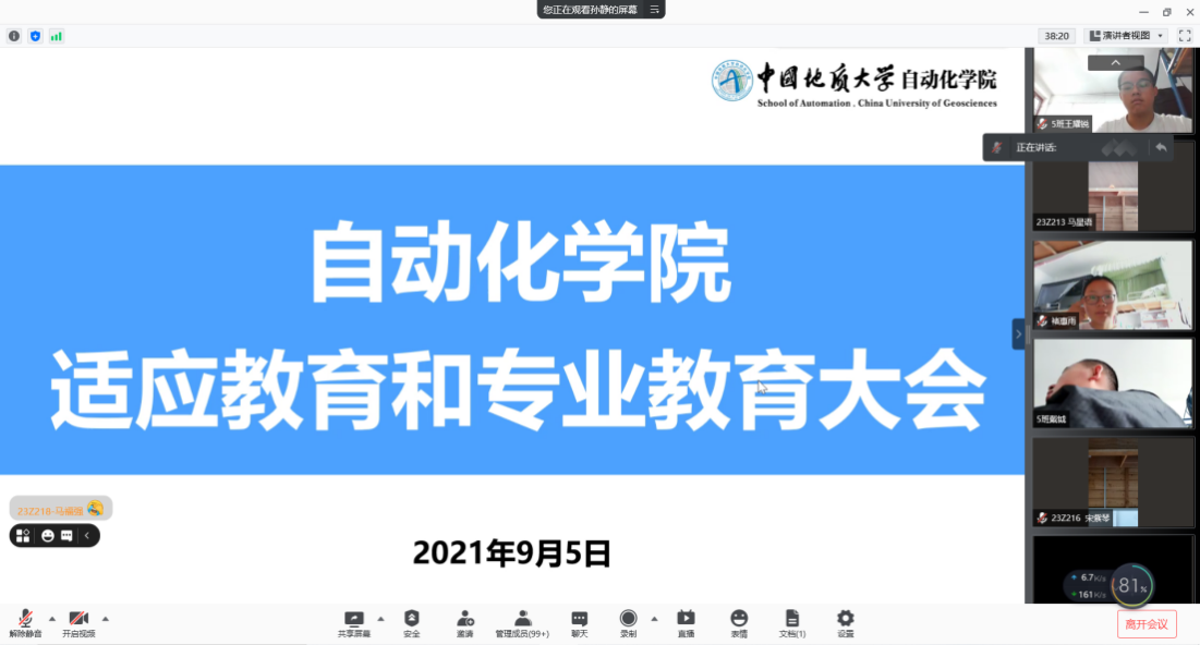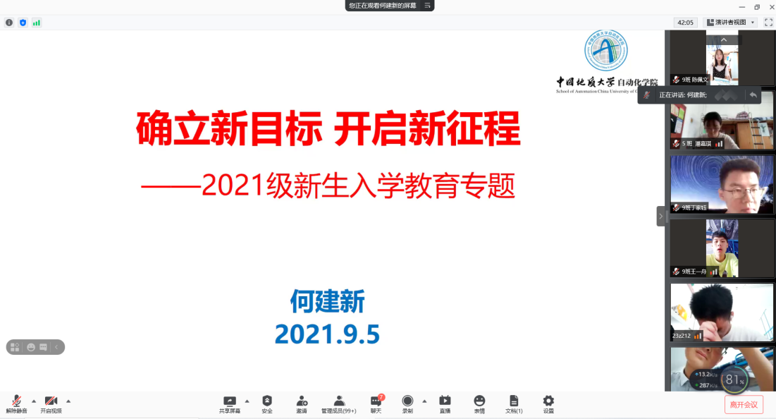 召开2021级新生线上适应教育和专业教育主题大会。学院党委副书记何建新老师、自动控制系系主任安剑奇老师、教务王老师参加此次主题教育大会,会议由辅导员孙静老师主持。学院召开此次教育大会旨在让2021级新生尽快完成从高中生到大学生的身份转变,了解大学生活和学院专业设置及课程安排,更好地适应大学生活。