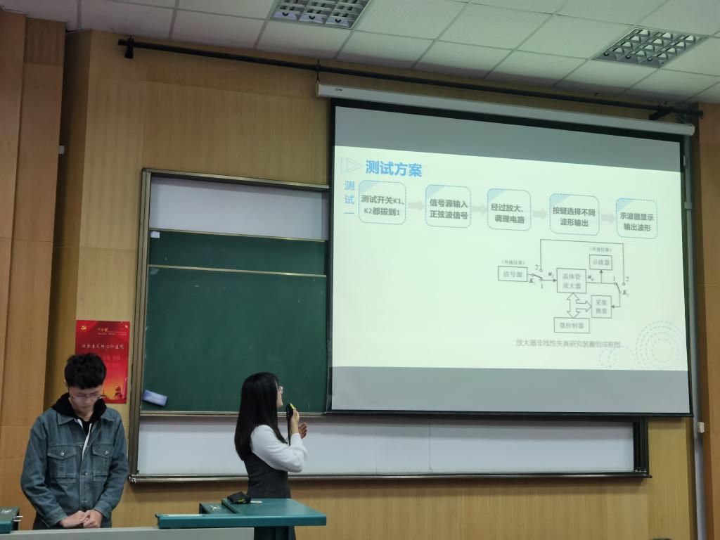 在答辩环节,参赛的八组同学对自己的参赛作品进行讲解,具体说明自己的创作目的、制作原理、应用前景等,参赛作品选题广泛,涉及机器人、非接触式测量、控制等多个热门领域,参赛选手们理论与实践相结合,部分团队展示了自己的实体研究成果,给我们带来了精彩的展示: