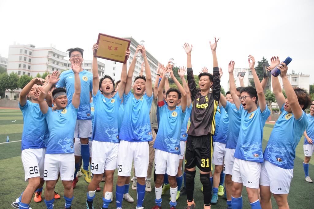 以2:0战胜劲敌体育学院,获得了本届地大杯足球赛冠军!这是历史性的一刻,海角视频