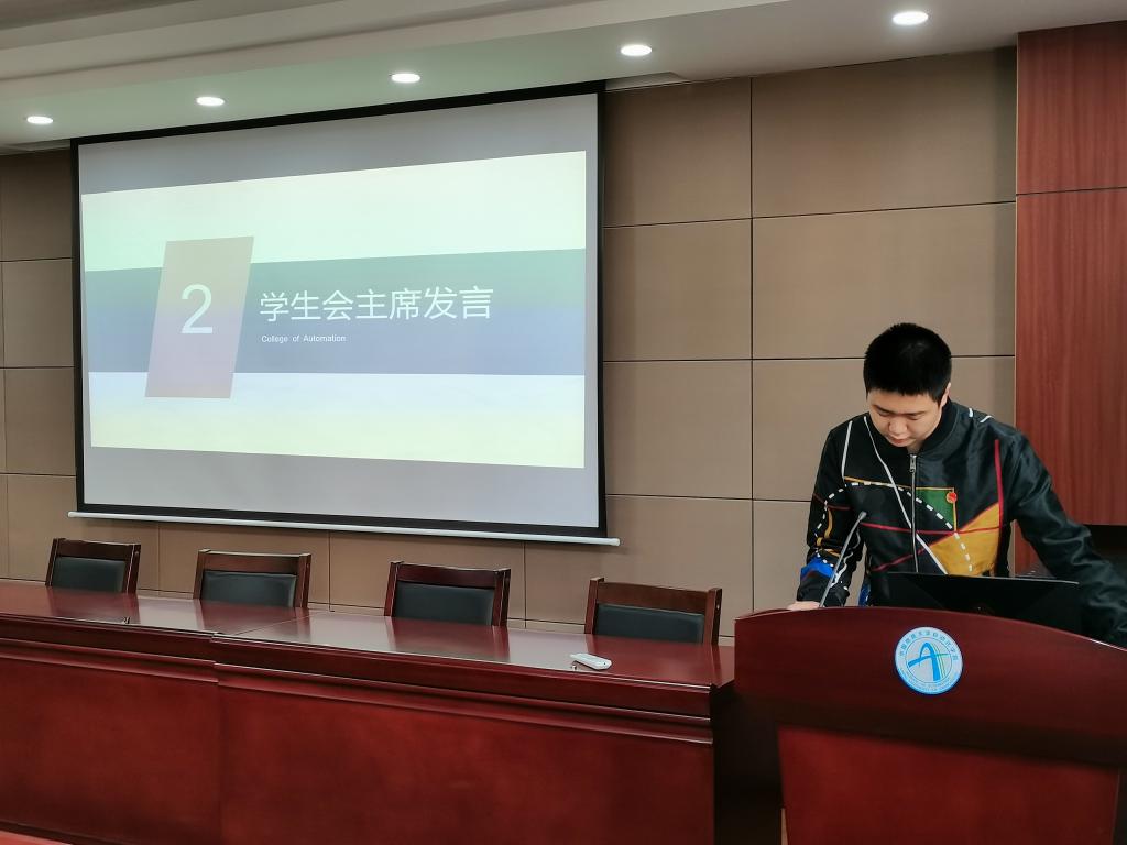 大会第四项,辅导员黄兰华老师致辞。黄兰华老师首先阐明了团委学生会的职责和定位,并希望各位学生干部在学生工作中勇于担当、尽职尽责。同时,也对团委学生会在“走进自动化”系列活动中的辛勤付出予以肯定。最后,他以“心怀中国梦,扬帆正启航”表达了对团委学生会后续工作的期盼。