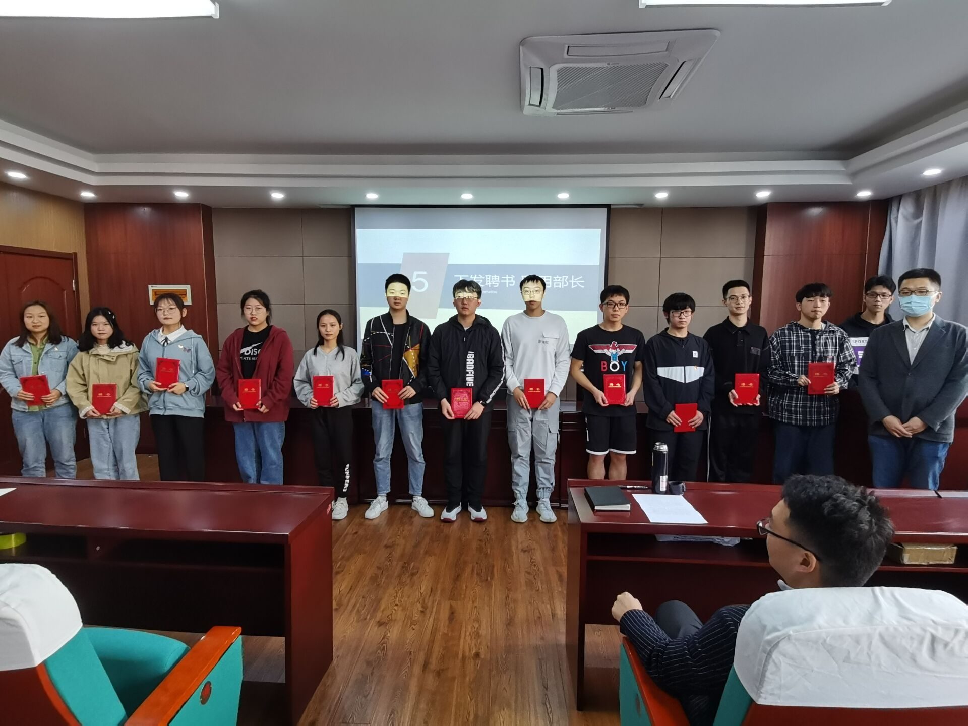 大会第五项,刘力老师为新任主席团成员和部长们下发聘书。