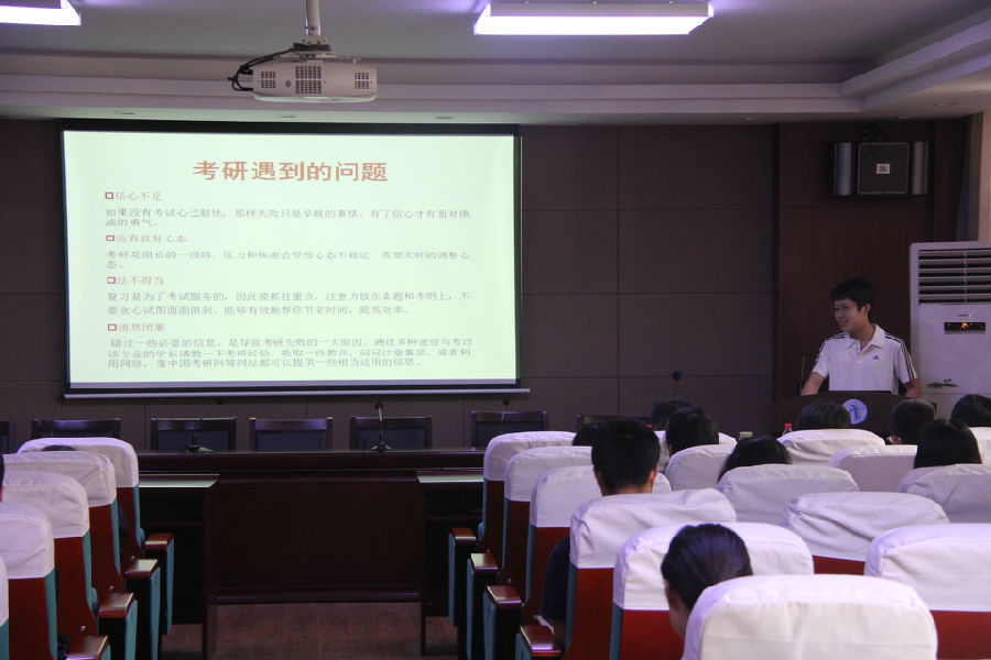 团学联学风部于信息楼报告厅举办“师兄师姐有话说”交流活动,本次活动从保研、考研、支教、找工作四个方面对学弟学妹答疑解惑。