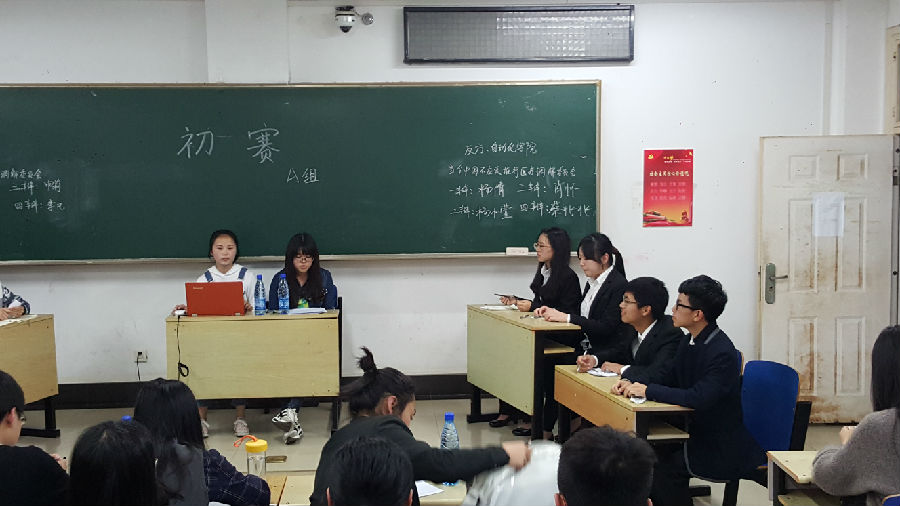 与环境学院在411教室参赛,此次比赛的辩题是“当今中国应不应该推行医疗调解委员会”。正方为环境学院持中国应当推行医疗调解委员会的观点,反方为海角视频