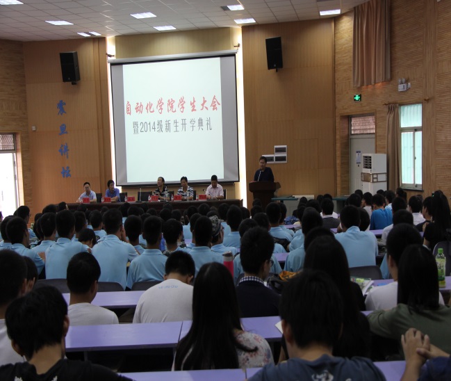 学生大会暨2014级新生开学典礼在教三楼109室隆重举行。院长吴敏、院党委书记董浩斌、副院长曹卫华、金星,以及何勇教授等教师代表出席了大会。院党委副书记何建新主持大会。