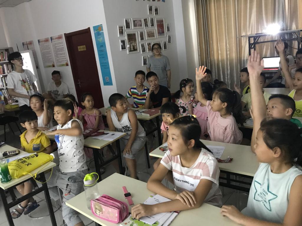 学生的科技小作品并介绍原理,课堂气氛活跃,儿童们非常感兴趣。