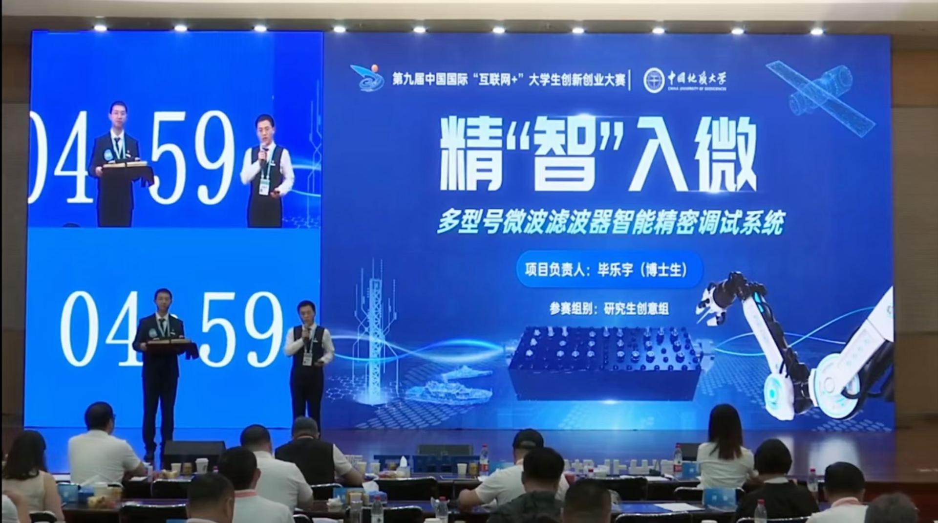 本届大赛中,由曹卫华教授、王向东老师和王艺霖老师共同指导的《“精‘智’入微——强适应性的微波滤波器智能精密调试系统》项目,荣获高教主赛道湖北省金奖,该团队由控制科学与工程专业的毕乐宇、郭琳炜博士作为主要负责人,任泰锟、杨文琳、徐扬、曾国依等来自多个学院、多学科交叉的本硕博生组成。该项目面向制造强国、网络强国、数字中国的重大战略需求,针对微波滤波器性能调试过程依赖经验丰富调试工人,及“调不好、调不快、调不了”三大问题,交叉融合控制科学、微波通信、精密制造等多学科,形成了“识别-建模-优化”一体化的智能精密调试解决方案,实现了多型号滤波器的高效率调试,推动相关企业生产向高端化智能化转型,促进微波通信核心基础零部件智能制造。