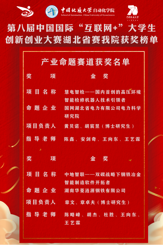 两支由硕博研究生作为主力参赛队员的项目在经过层层激烈角逐后突出重围,勇夺湖北省赛区产业命题赛道两项金奖,实现了学院参赛以来金奖数量从“0”到“2”的突破,也是学校在产业命题赛道的历史最好成绩。