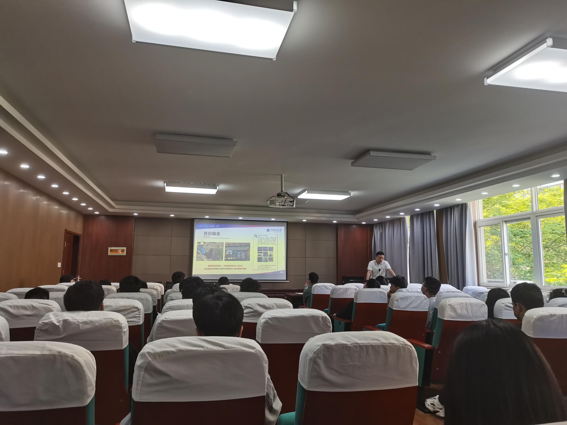 王向东老师对“互联网+”大赛作了详细介绍。王老师向大家介绍了中国国际“互联网+”大学生创新创业大赛的发展历程和我校历年参加“互联网+”大赛的成绩,并指出“互联网+”大赛是人才培养的试金石,是“以赛促教”、“以赛促学”、“以赛促创”的重要途径。紧接着王老师用实际案例向大家讲述了参加“互联网+”大赛对个人发展的重要意义。“互联网+”比赛不仅是对学生的专业知识和创新应用能力的锻炼,更是对意志力的考验,能让一个人变得自信而又坚韧。